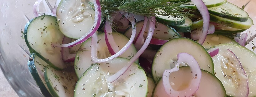 I know Fall is on the horizon, but I am not quite ready to let go of all those Summer flavors. With the help of my pal Vanessa, I have created this yummy cucumber side. Now mine is spicy because I used hot pepper vinegar, but you can easily add red pepper flakes, or simply … Continue reading Spicy Cucumber Salad